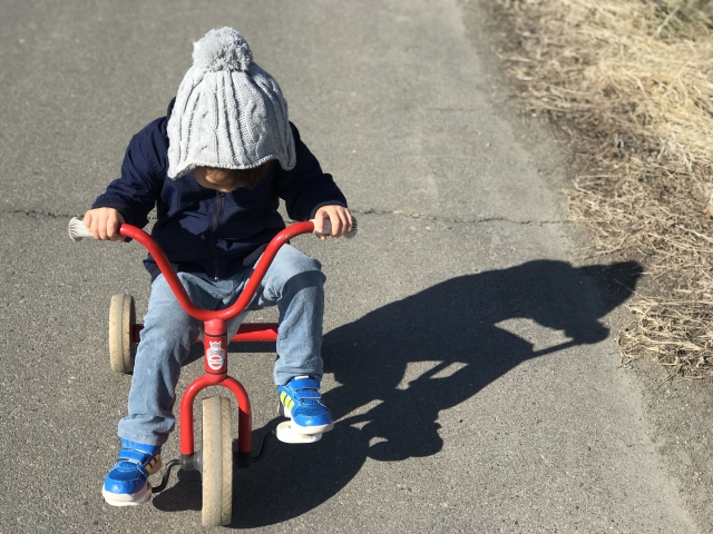 一番ベターなのは公園ですが、ストライダーの走行を許可している場所が近くにない場合は、三輪車を選んだ方が失敗しにくいです。