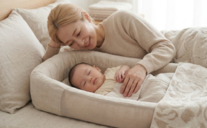 子どもを親の隣で寝かせることで、夜泣き対応や授乳が横になったままできるので、夜中のお世話の負担が少なくて済みます。